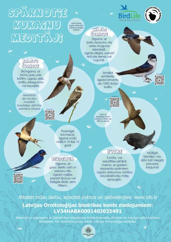 Projekta ietvaros tika organizēti vairāki sabiedrības iesaistes un izglītošanas pasākumi dažādām vecumgrupām. Ar projekta atbalstu pavasarī noritēja Putnu dienas un ievērojamās putnu vērošanas sacensības “Torņu cīņas”. Savukārt vasarā iespējām sarīkot pasākumu bērniem par svīru tematiku, piedalīties ar darbnīcu abos “Dabas koncertzāles” pasākumos, kā arī apciemot trīs pilsētas pilsētu svētku ietvaros, kur rādījām un stāstījām par LOB, putnu balsīm un līdzīgo putnu atšķiršanu. Organizējām arī plaši apmeklēto un īpaši ģimenēm veltīto pasākumu “LOB Ģimeņu dienas”.