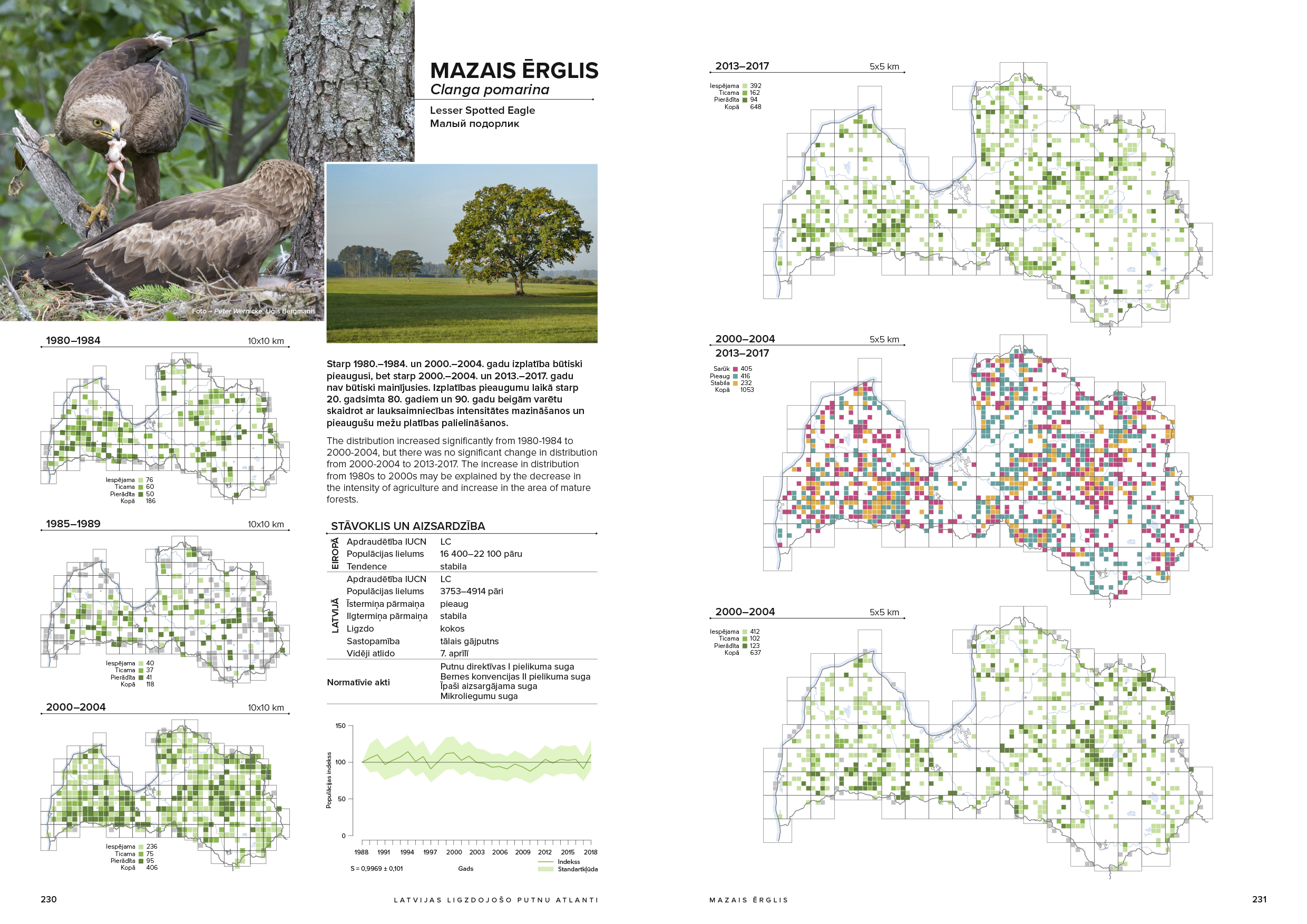 Ligzdojošo putnu izplatība t.s. ligzdojošo putnu atlantu ietvaros Latvijas mērogā kartēta četras reizes: 1980.–1984., 1985.–1989., 2000.–2004. un 2013.–2017. gadā. Līdz šim tikai pirmais Latvijas ligzdojošo putnu atlants (1980–1984) izdots grāmatā, bet jaunajā izdevumā apkopoti visu četru pētījumu rezultāti, tā dodot iespēju novērtēt, kā mainījusies ligzdojošo putnu izplatība no 20. gadsimta 80. gadiem līdz mūsdienām. Balstoties uz šiem datiem novērtēta arī ligzdojošo putnu sugu apdraudētības pakāpe. Grāmatā atspoguļotas arī putnu populāciju lielumu pārmaiņas, balstoties uz sistemātiskām ligzdojošo putnu uzskaitēm. Grāmatā dokumentēts, piemēram, baltā gārņa, jūras ērgļa, dzērves un vidējā dzeņa populācijas uzplaukums, kamēr zaļās vārnas, dzeltenās cielavas, vistu vanaga, mājas zvirbuļa un citu sugu izplatība Latvijā norādītajā laika posmā ir samazinājusies.