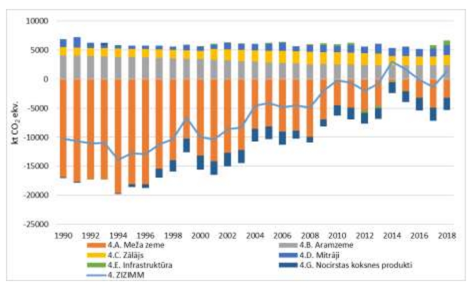 Galu galā to, ka, no oglekļa piesaistes viedokļa raugoties, vecu mežu aizstāšana ar jauniem ir aplama, skaidri parāda līdzšinējā pieredze un dati. Lai gan Zemkopības ministrija kārtējo reizi mēģina vainot vecus mežus pie tā, ka oglekļa piesaiste mežos samazinās, oficiālais ziņojums par siltumnīcefekta gāzu emisijām (kura tapšanā piedalījusies tā pati “Silava”) saka skaidri, ka zemāk ievietotajā attēlā redzamais “CO2 piesaistes samazinājums ZIZIMM sektorā saistāms ar mežizstrādes apjoma pieaugumu.” (lasīt šeit). Tātad jau šobrīd arvien vairāk ciršanas vecumu pārsniegušo audžu tiek aizstāts ar jaunaudzēm, un likumsakarīgs rezultāts ir CO2 piesaistes sarukums.