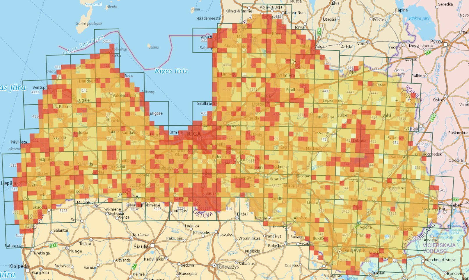 Lai iegūtie dati būtu pēc iespējas noderīgi pētniekiem, ierakstus gaidām no maz apsekotajām teritorijām (kvadrātiem), kas ir bez krāsas vai gaiši dzelteni. Sarkanās teritorijas ir pilnībā apsekotas. https://dabasdati.lv/lv/putnuatlants/ievadellpa3/