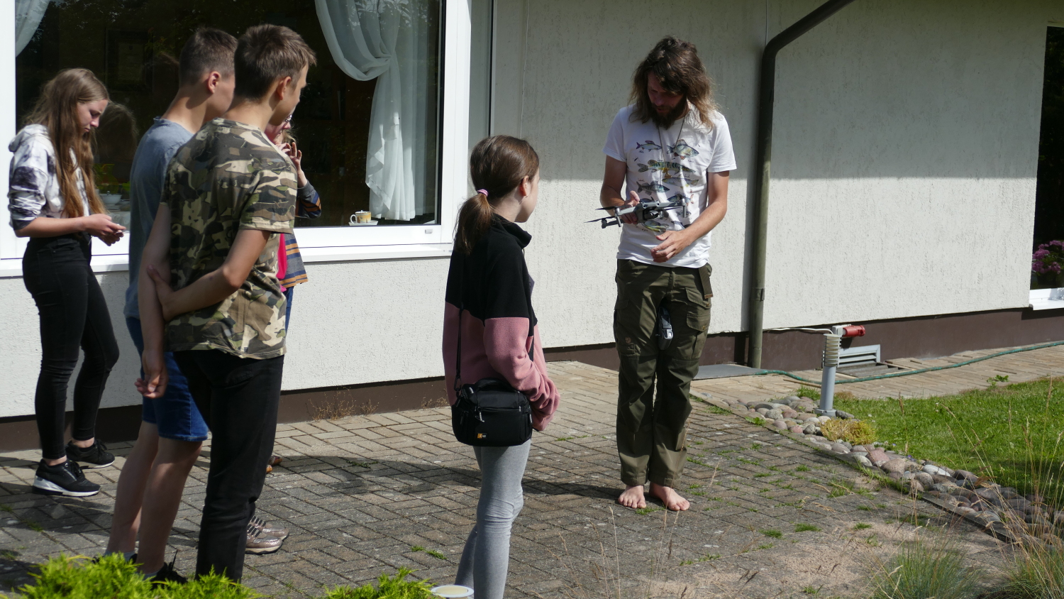 Ivo Dinsbergs demonstrēja putnu izsekošanu ar dronu, ļaujot dalībniekiem pašiem izmēģināt drona pilotēšanu. Dienas izskaņā norisinājās putnu gredzenošanas nodarbība, apgredzenojot putnu tīklos ielidojušos putnus – čunčiņu un sarkanrīklīti.