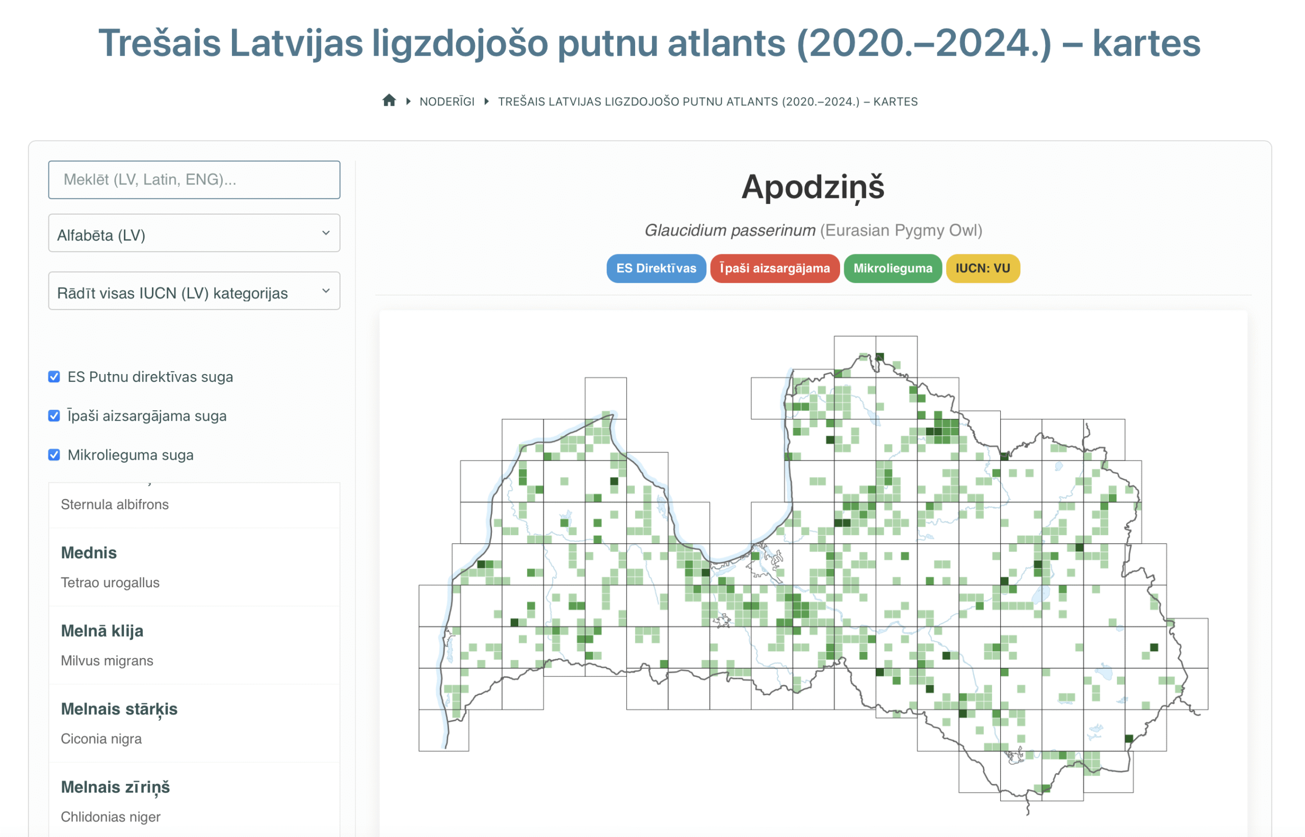Latvijas Ornitoloģijas biedrība (LOB) publiskojusi Latvijas ligzdojošo un Latvijā ziemojošo putnu sugu izplatības kartes. Kartes, kuru izveidē liela loma ir putnu vērotāju iesaistei sabiedriskajā zinātnē, ir brīvi pieejamas tiešsaistē LOB tīmekļvietnē.