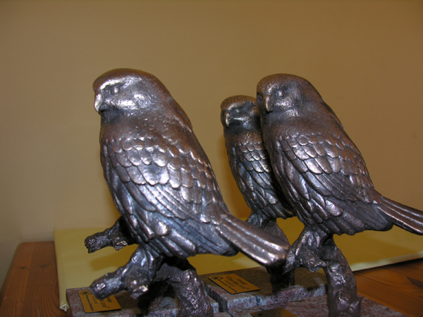 Uzvarētāju balvas - metālmākslinieka Anda Egles gatavotie apodziņi.  Foto P. Strautiņš