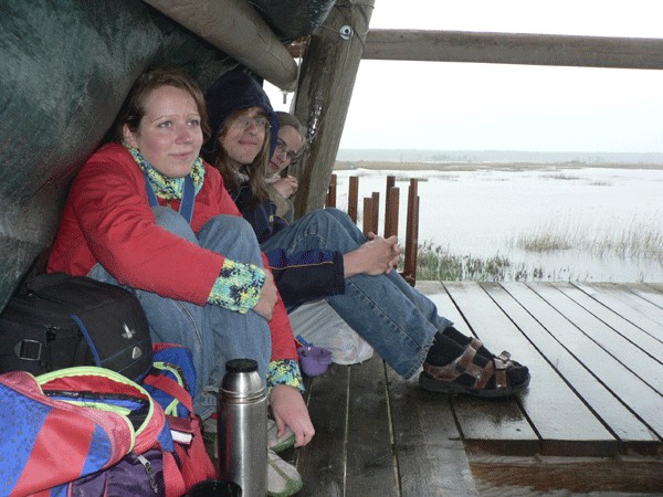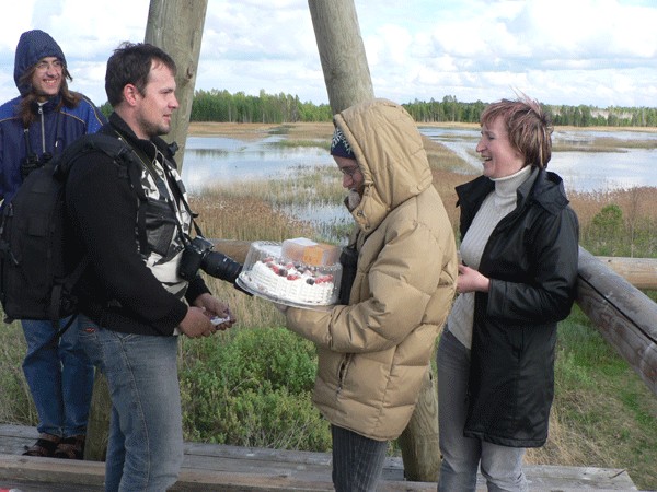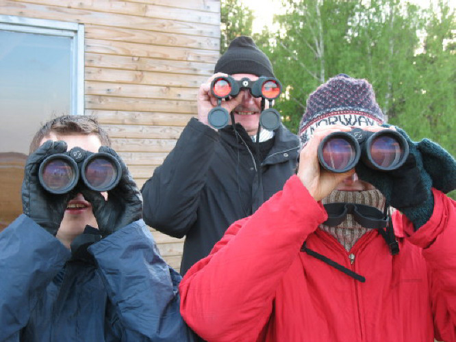 Komanda "Čiri-čiri čirrrr" Engures ezera Ķūļciema tornī.  Foto: S. Kosobokovs