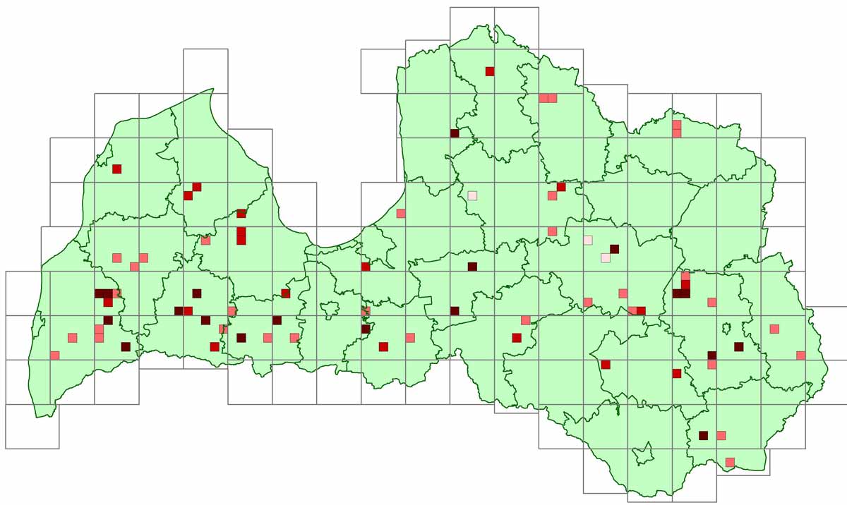 Mazais dūkuris Tachybaptus ruficollis Home Projekti Latvijas ligzdojošo putnu atlants Latvijas ligzdojošo putnu atlanta rezultāti Sugu izplatības kartes Mazais dūkuris Tachybaptus ruficollis